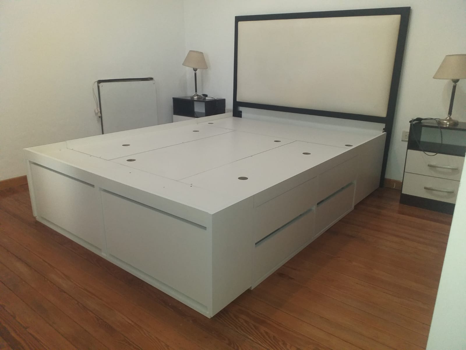 Muebles en melamina 18mm, en mdf 15mm y mdf 18mm con cajones con guías telescópicas.